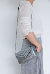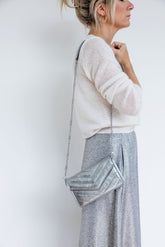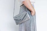 Elegant en toch opvallend, de Laurie crossbody tas is gemaakt in Italië van metallic leer met een zilverkleurige schakelband. Deze tas kan worden gedragen als clutch bij een avondje uit of je kunt je handen vrij houden en hem als schouder-/crossbody tas dragen