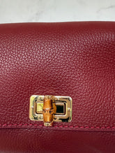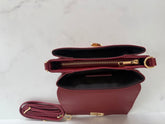 Een klassieke crossbody tas met een bamboe sluiting aan de voorzijde  De tas heeft drie vakken aan de binnenzijde met daartussen een afsluitbaar vak en een steekvakje. De tas heeft een verstelbaar hengsel.