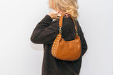Tas met gouden studs. De tas kan ook crossbody gedragen worden met de afneembare gouden ketting.